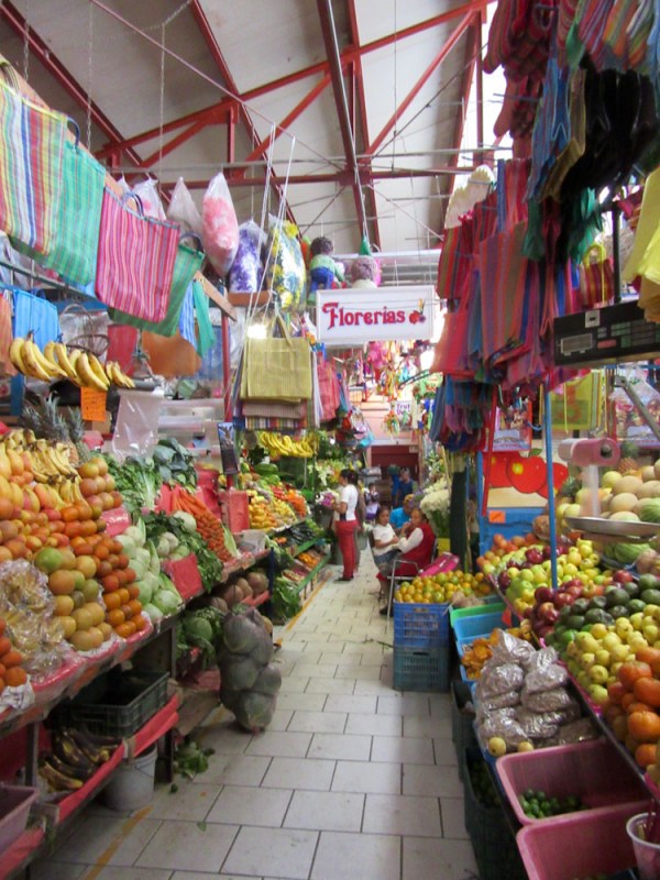 Les fruits et légumes sont en abondance et à un bon prix au mercado Ignacio Ramírez. Un peu plus loin, des marchandes de fleurs attendent la venue des clients. San Miguel de Allende, Guanajuato, Mexique