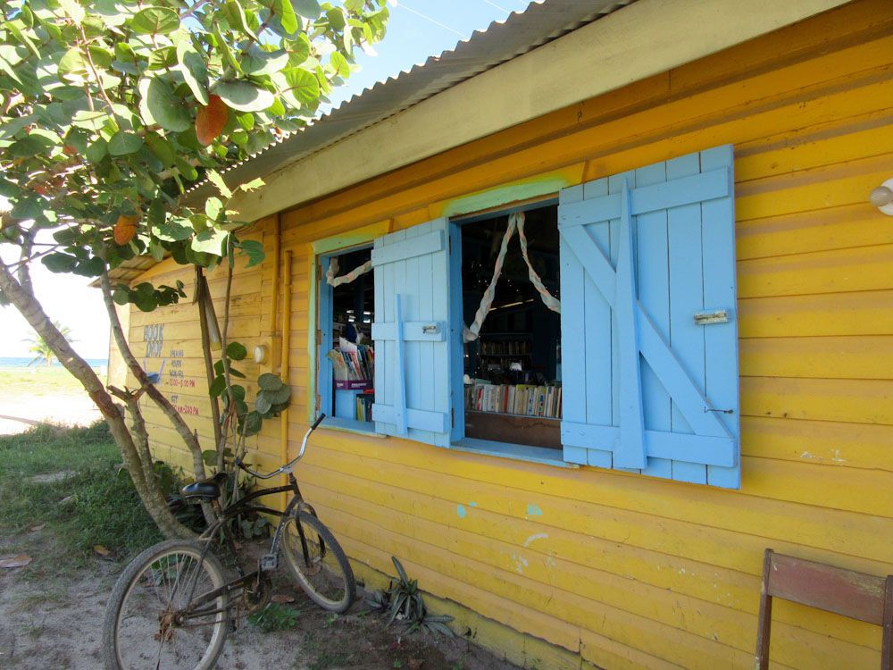 J’ai été séduite par cette bibliothèque aux volets bleus et sa vue sur la mer. Hopkins, Stann Creek District, Belize.