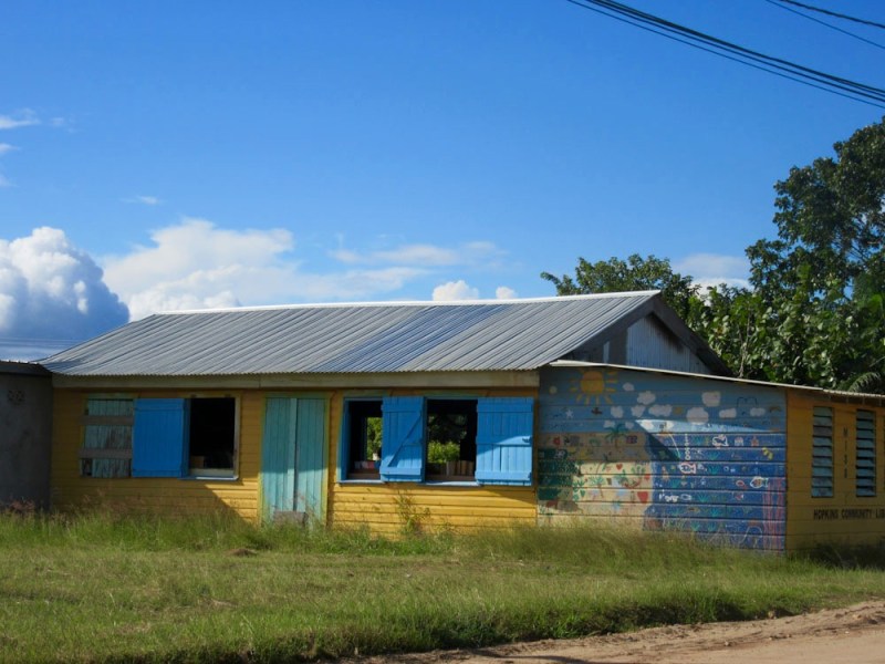 C’est tout d’abord les volets bleus et la jolie murale qui ont attiré mon attention sur cette petite bibliothèque à Hopkins, toute seule sur le bord de la route. Stan Creek District, Belize.