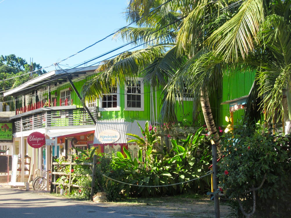Quelques boutiques de souvenirs ont pignon sur la rue principale. Placencia, Stann Creek District, Belize.