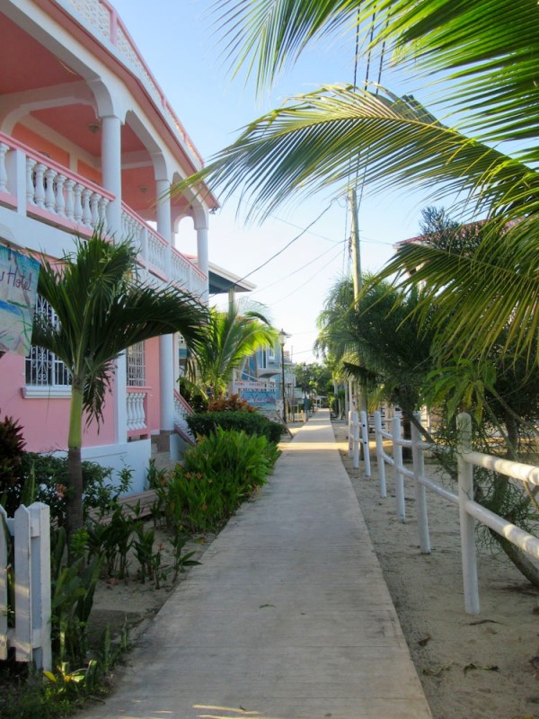 Les hôtels de différentes catégories sont accessibles à partir du Sidewalk. Placencia, Stann Creek District, Belize.