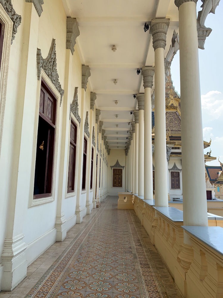Balcon garni de colonnades de la salle du Trône du Palais royal. Phnom Penh, Cambodge.