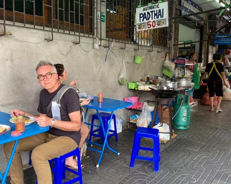 Un pad thaï cuisiné et dégusté sur le trottoir? Tout à fait délicieux! Bangkok, Thaïlande.