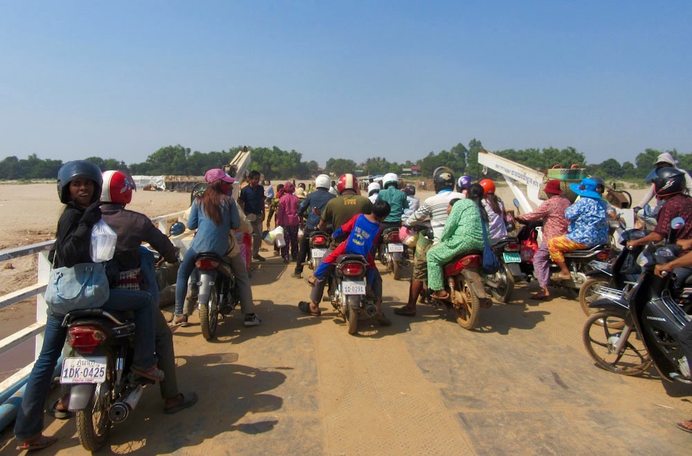 La traversée du Mékong sur un traversier. Kratie, Cambodge.