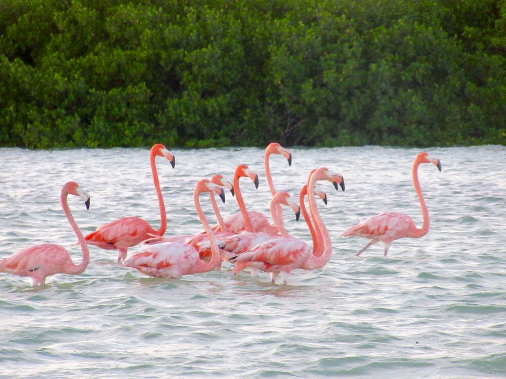 Les flamants roses sont non seulement au rendez-vous, mais ils se laissent volontiers observer. Rio Lagartos, Yucatán, Mexique.