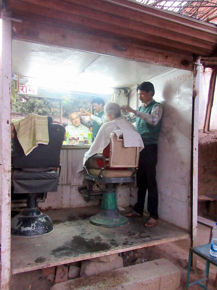 Un arrêt chez le barbier n’est pas un luxe après trois mois d’aventures, Orchha en Inde.