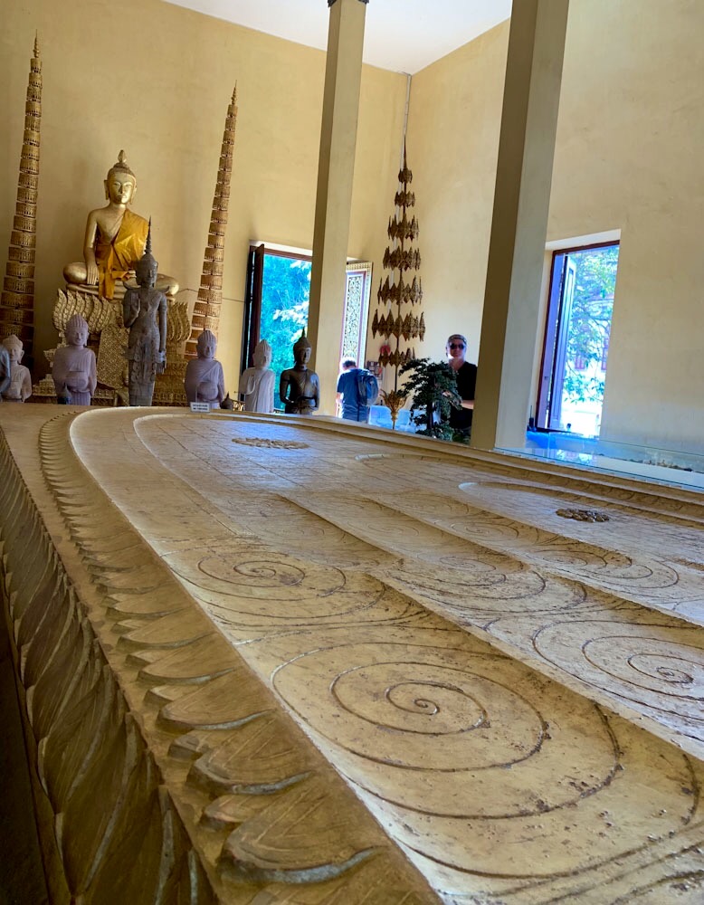 L’empreinte du pied de Bouddha peut être observée dans l’une des pagodes du Palais royal, Phnom Penh, Cambodge.