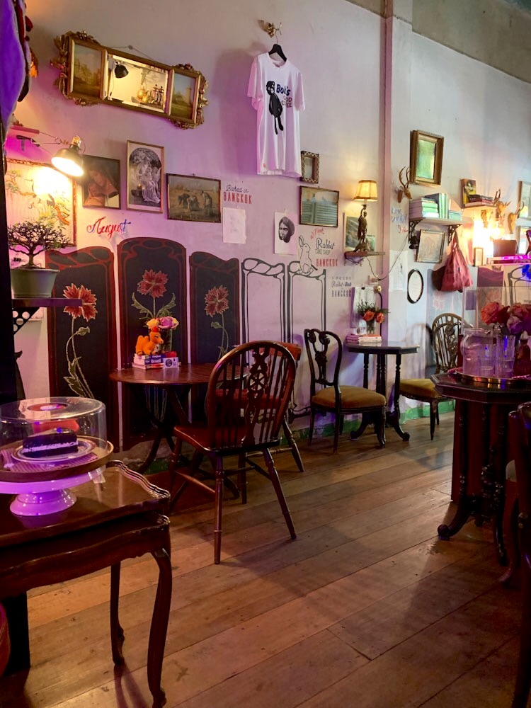 Le café Pink Rabbit&Bob permet une pause agréable lors de la visite du Wat Pho et du Wat Phra Kaew. Bangkok, Thaïlande.