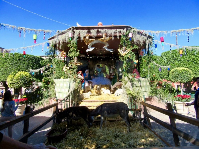 Une crèche est apparue sous la gloriette du jardin principal quelques jours avant Noël, San Miguel de Allende, Guanajuato, Mexique.
