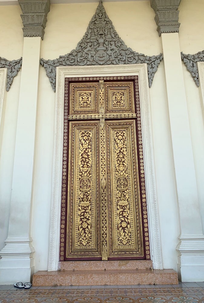 Une porte joliement décorée de la salle du Trône au Palais royal. Phnom Penh, Cambodge.