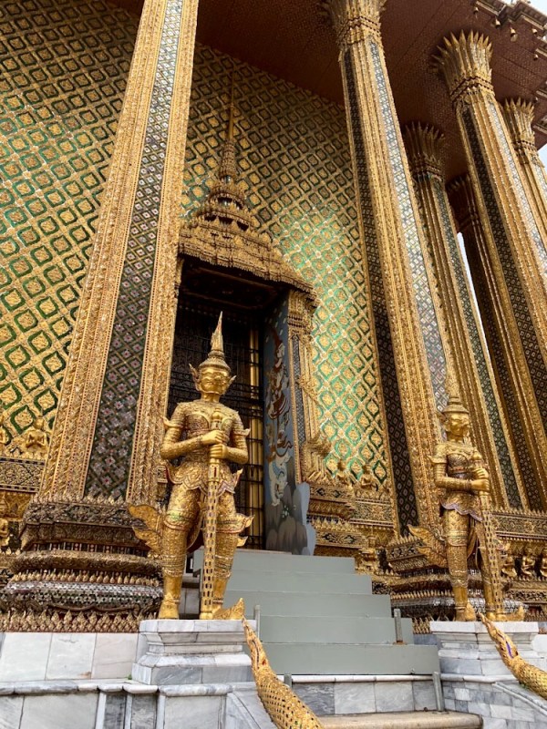 Un des édifices du complexe du temple Wat Phra Kaew, riche orné. Bangkok, Thaïlande