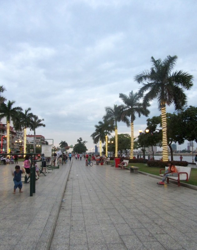 La promenade le long du Tonlé Sap accueille des gens de tous les âges et s’anime davantage à la tombée de la nuit lorsque la température devient plus confortable. Phnom Penh, Cambodge.