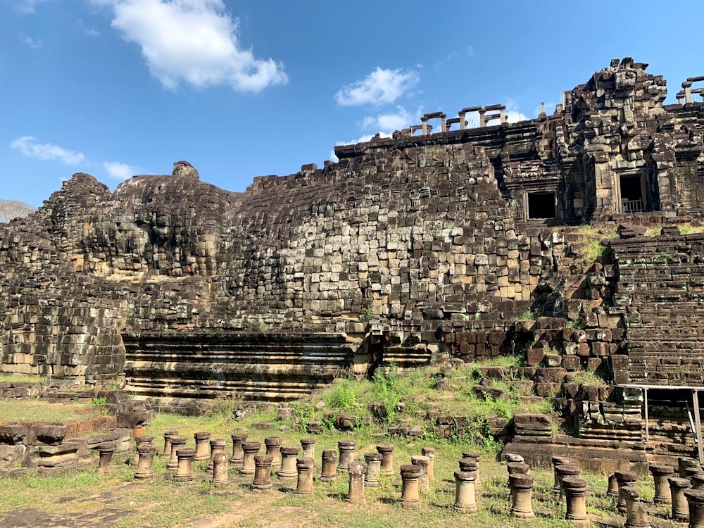 Le Bouddha couché derrière le Baphuon. Pouvez-vous le discerner? Il occupe le mur au complet. Angkor Thom, Siem Reap, Cambodge.