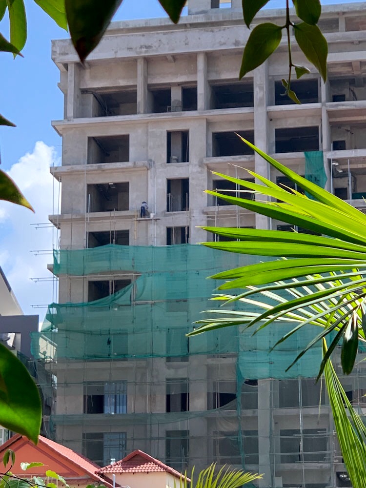 Cet homme travaille presque en haut d’un immeuble en construction, sans rien pour le retenir en cas de chute. Phnom Penh, Cambodge.
