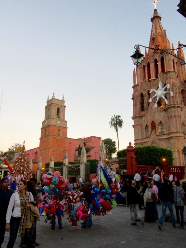 La grande place devant la Parroquia, l’église San Rafael et El Jardin est très prisée des promeneurs, San Miguel de Allende, Guanajuato, Mexique.