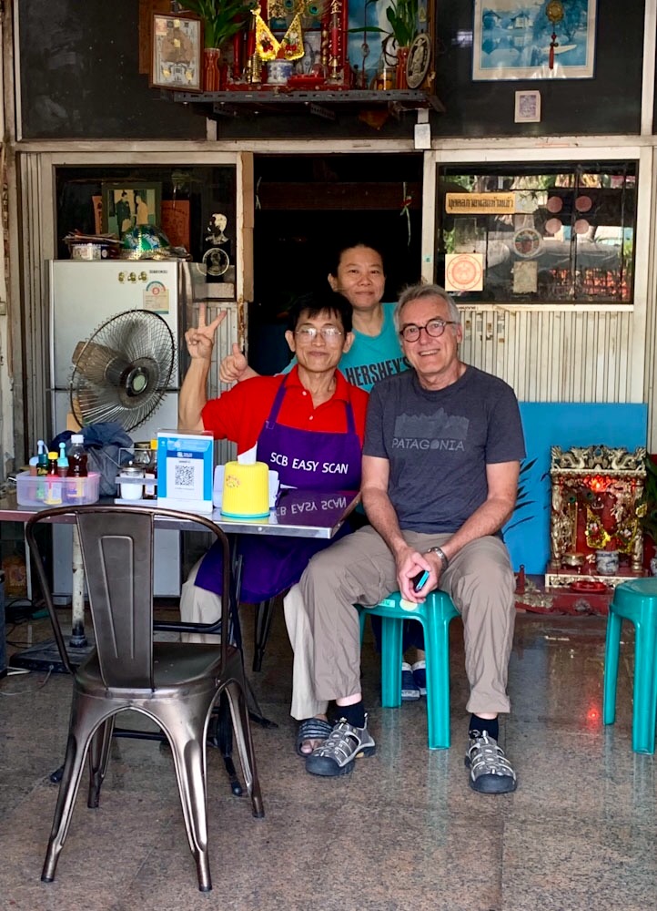 Ce jeune homme a réparé les chaussures de mon amoureux et il en est très fier. Presque voisin du Baan Manusarn, il a été recommandé par la propriétaire. Elle avait bien raison! Bangkok, Thaïlande.