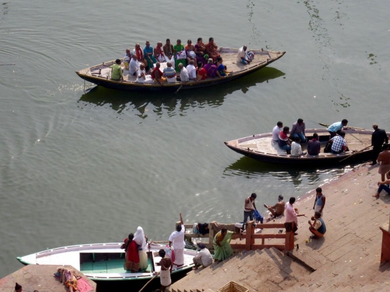 Un départ en barque pour une ballade sur le fleuve sacré, un incontournable à Varanasi, Inde.