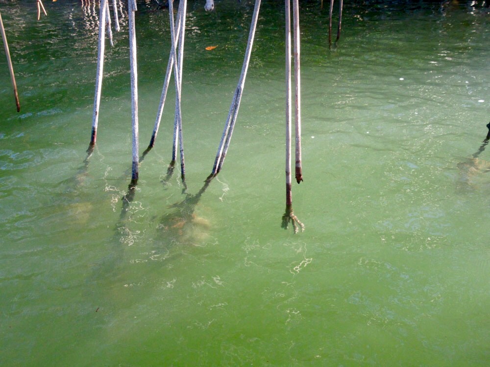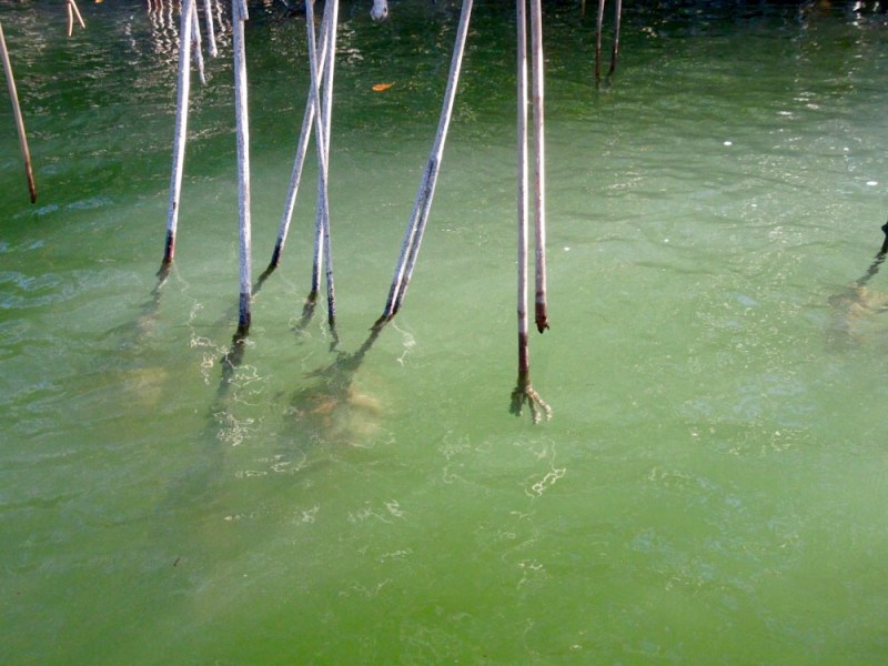 Les racines des certains arbres de la mangrove sont à peine perceptibles sous l’eau. Rio Lagartos, Yucatán, Mexique.