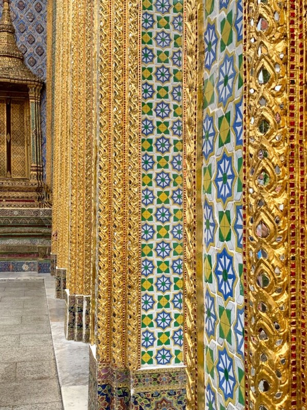 Je suis totalement émerveillée par les détails des édifices sur le site du Grand Palais et du Wat Phra Kaew. Bangkok, Thaïlande.