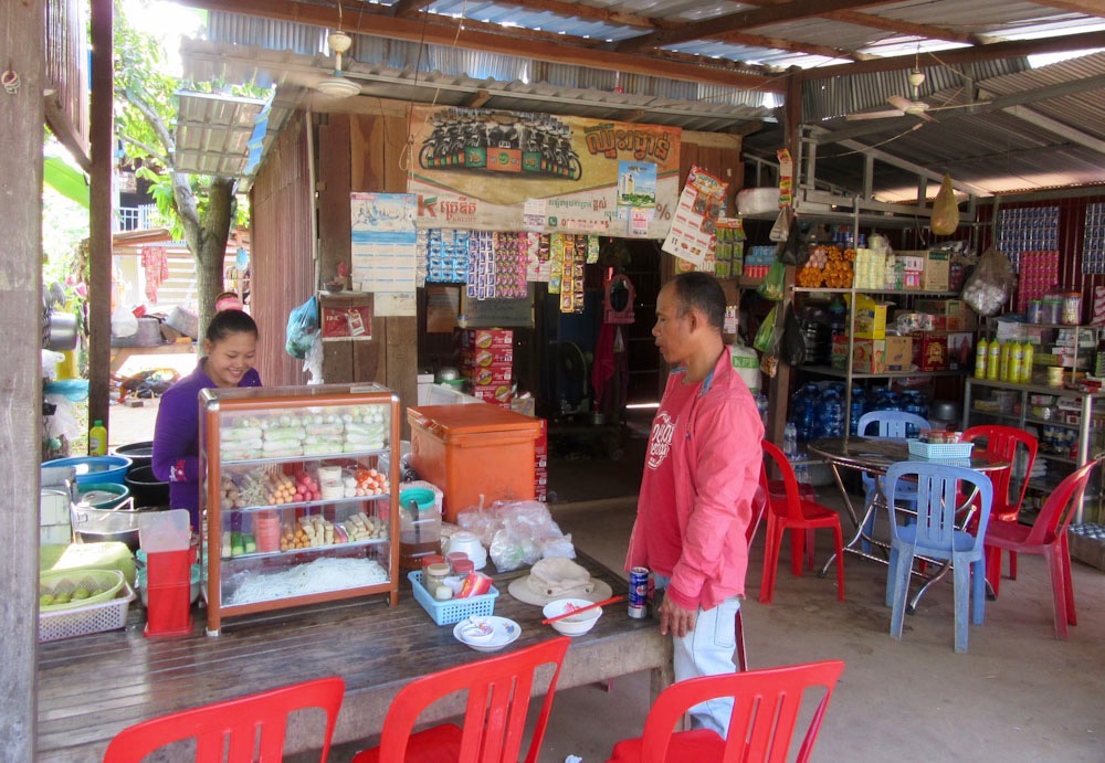 Sur le chemin de Chhlong, Sokcheat s’est arrêté dans un petit resto sur le bord de la route. Nous y avons dégusté d’excellents rouleaux de printemps! Kratie, Cambodge.