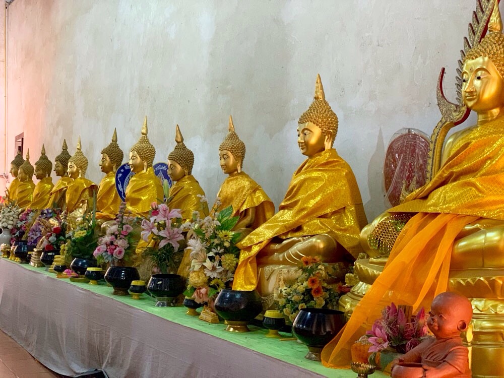 Même dans ce petit temple modeste, les bouddhas sont honorés. Wat Samanakottaram, Ayutthaya, Thaïlande.