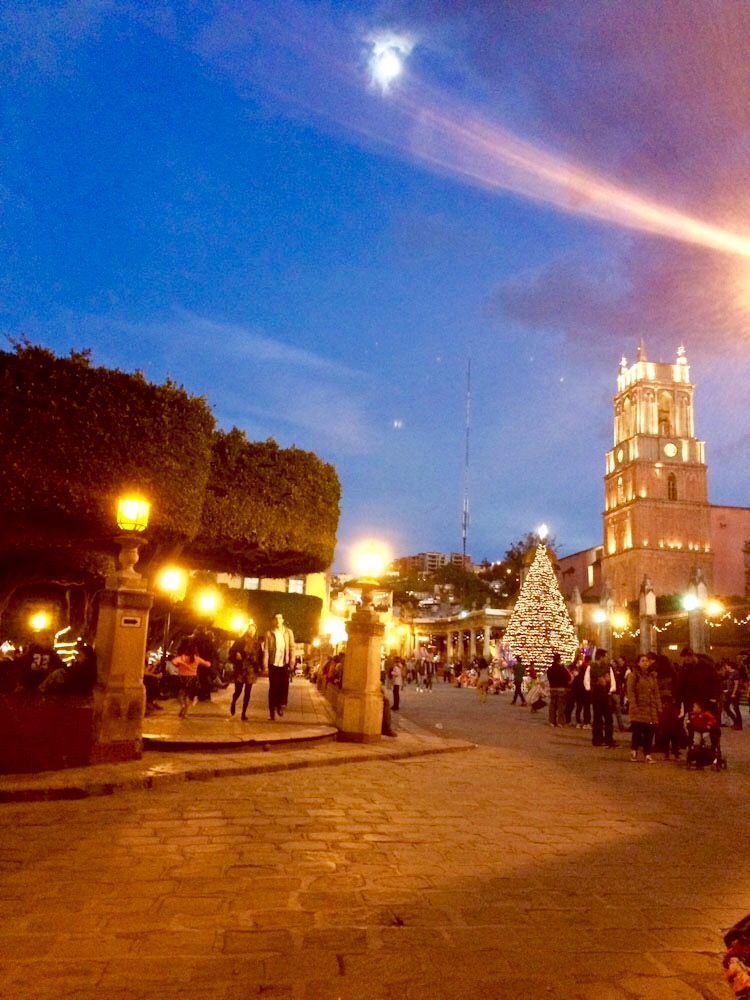 La lune se lève sur la place centrale de San Miguel de Allende, Guanajuato, Mexique.