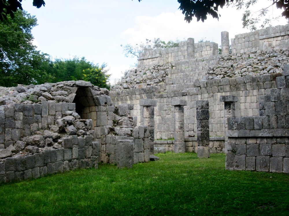 El Templo de Los Tableros avec ses sculptures. Il n’est pas très bien conservé, mais il fait tout de même rêver. Chichen Itzà, Yucatán, Mexique.