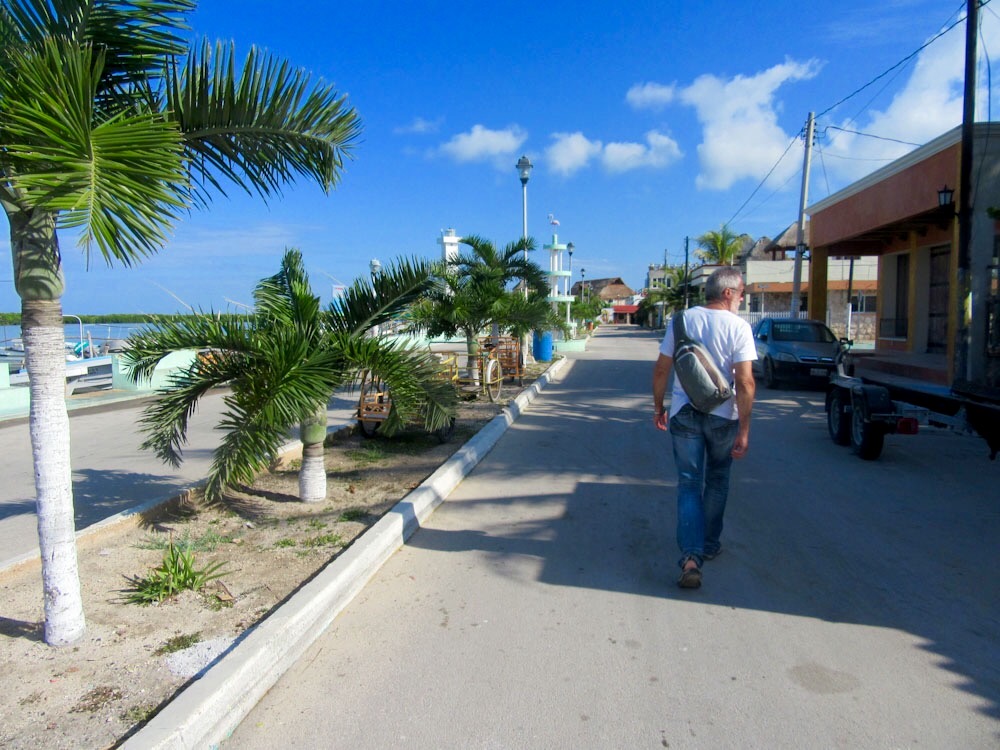 Marche dans les rues calmes de Rio Lagartos en ce beau dimanche ensoleillé. Yucatán, Mexique.