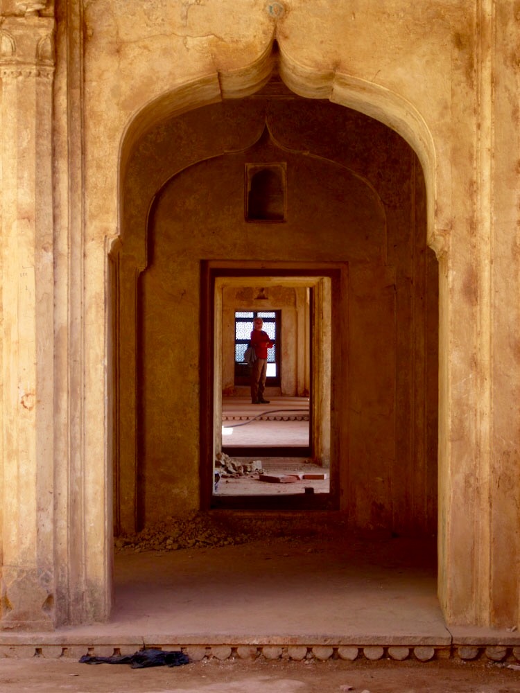 Une succession de portes nous laisse deviner la beauté de ces lieux au temps des anciens, Jahangir Mahal, Orchha, Inde.