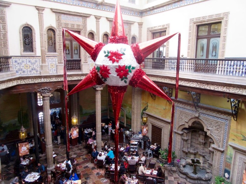 Une énorme piñata est suspendue au plafond du restaurant Sanborns de la Casa de Los Azuleos à Mexico, Mexique.
