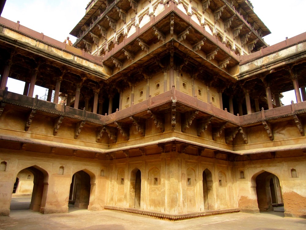 La partie centrale du palais Birsingh Deo aurait abrité les appartements du roi, Datia, Inde.
