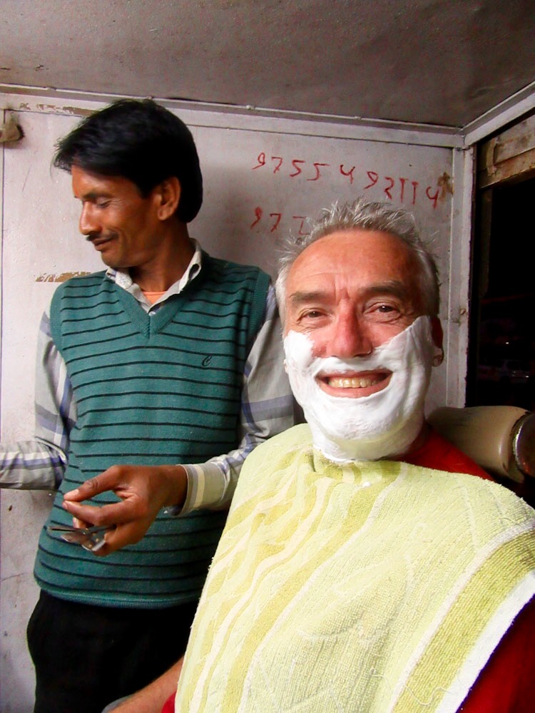 Un bon rasage par des mains expérimentées, ça fait du bien! Orchha, Inde.