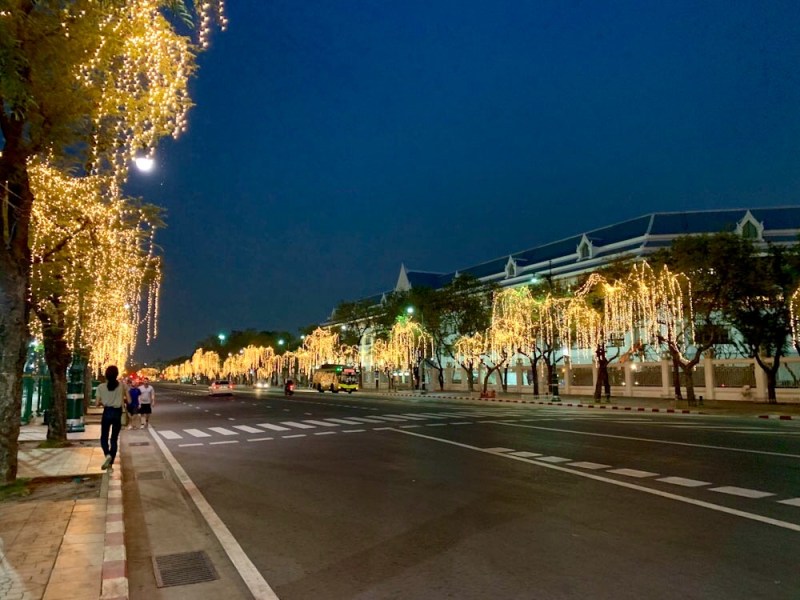 Rue illuminée de la ville de Bangkok, près du Grand Palais. Thaïlande.