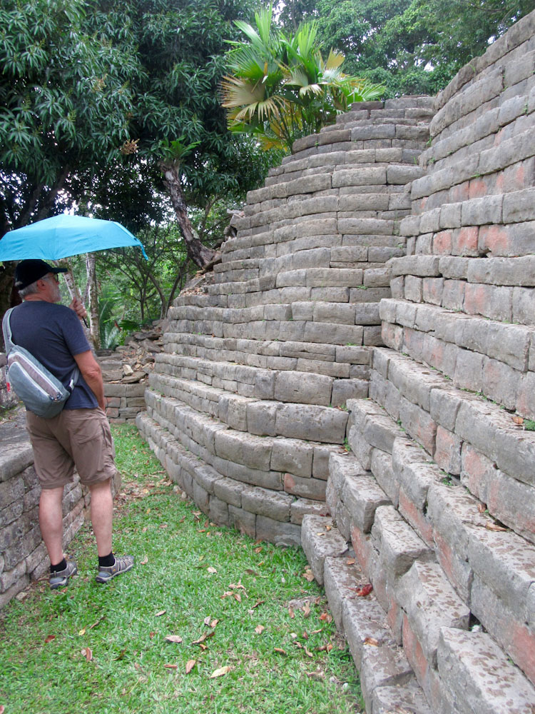 Certains murs de Lubaantun sont courbés et ajoutent au charme du site. Toledo District, Belize.