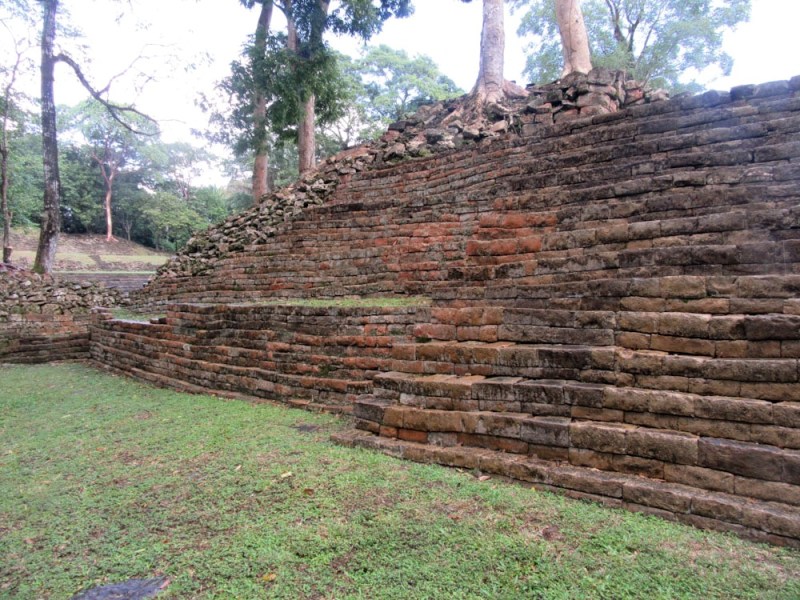 La coupe carrée des pierres de Lubaantun est particulière. De plus, elles sont retenues par très peu de mortier. Toledo District, Belize.