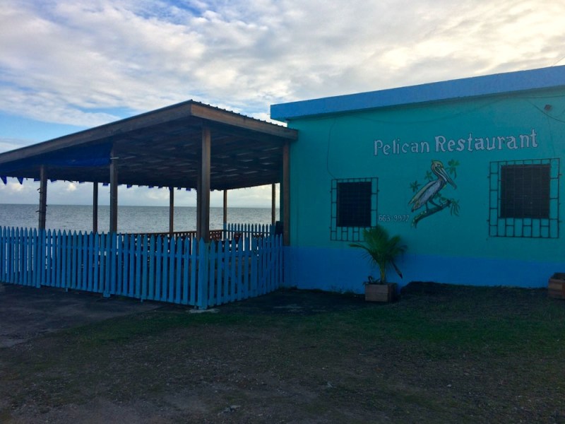 Le restaurant Pelican en fin d’après-midi, juste avant sa réouverture pour le repas du soir. Punta Gorda, Toledo District, Belize.