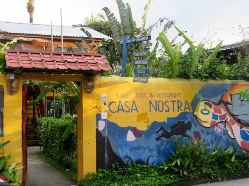 L’entrée du Guest House et Restaurant Casa Nostra est très accueillante, à l’image de ses propriétaires. Livingston, Guatemala.