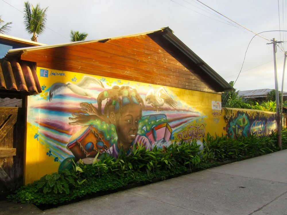 Le mur qui sépare le Guest House Casa Nostra de la rue a été peint dans le cadre d’un projet spécial relié au tourisme. Il est très réussi! Livingston, Guatemala.