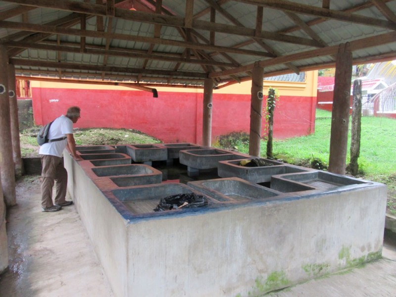 Nous avons eu la surprise de découvrir un lavoir public. Il y en a au moins deux dans la ville et ils sont très achalandés à certaines heures du jour. L’installation est très efficace! Livingston, Guatemala.