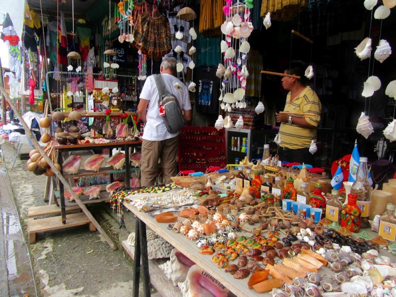 Pour certains touristes, c’est l’occasion pour acheter des produits d’artisanat local. Mon amoureux, quant à lui, s’intéresse aux instruments de musique. Livingston, Guatemala.