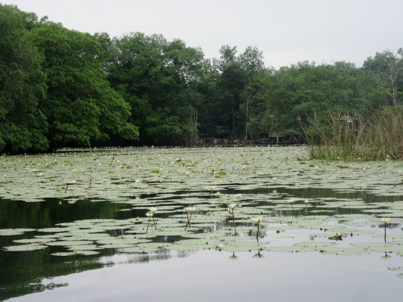 Les fleurs de lotus et les rives du Rio Dulce cachent un écosystème riche et varié. Guatemala.