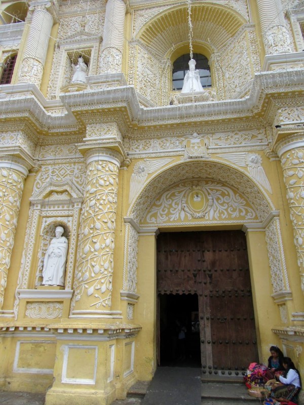 Iglesia de Nuestra Señora de la Merced, cette imposante structure nous séduit avec sa couleur jaune et ses ornements blancs. Antigua, Guatemala.
