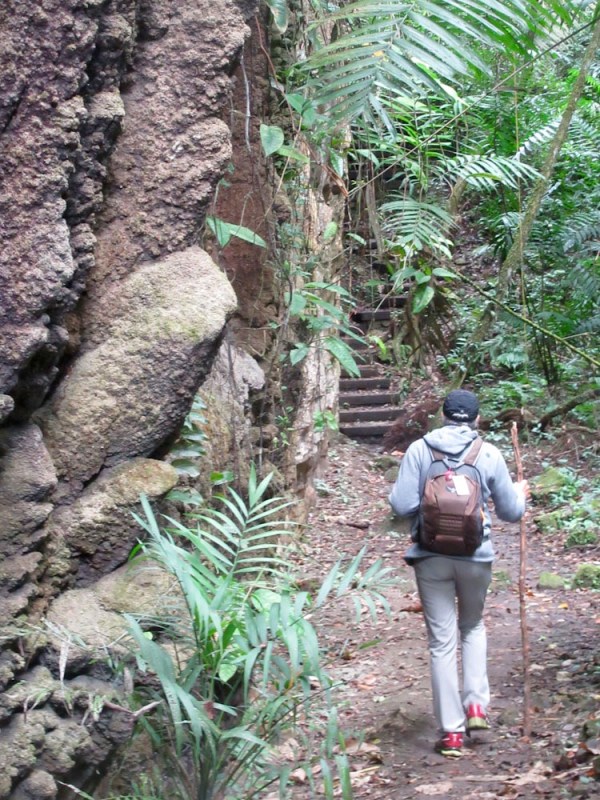 La haute falaise ainsi que les déplacements ralentis en raison des surfaces rendues glissantes par l’humidité, offraient une protection unique à la cité. Aguateca, Petén, Guatemala.
