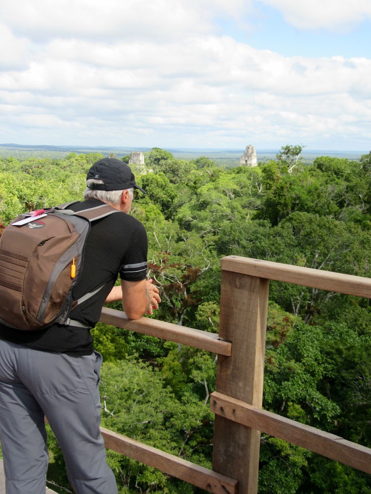 Mon amoureux ne connaît pas le vertige, ce qui lui permet d’apprécier sans contrainte le magnifique panorama de la jungle du Petén. Tikal, Guatemala.